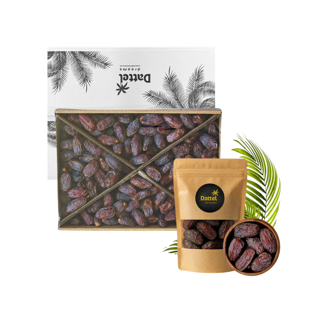 Kostenloser Versand innerhalb DeutschlandsEntdecke die Königin der Datteln: Unsere Datteldreams Medjoul Datteln stammen aus zertifizierten Anbaugebieten in Palästina und sind bekannt für ihre beeindruckende Größe, weiche Konsistenz und ihr natürlich süß-karamelliges Aroma.